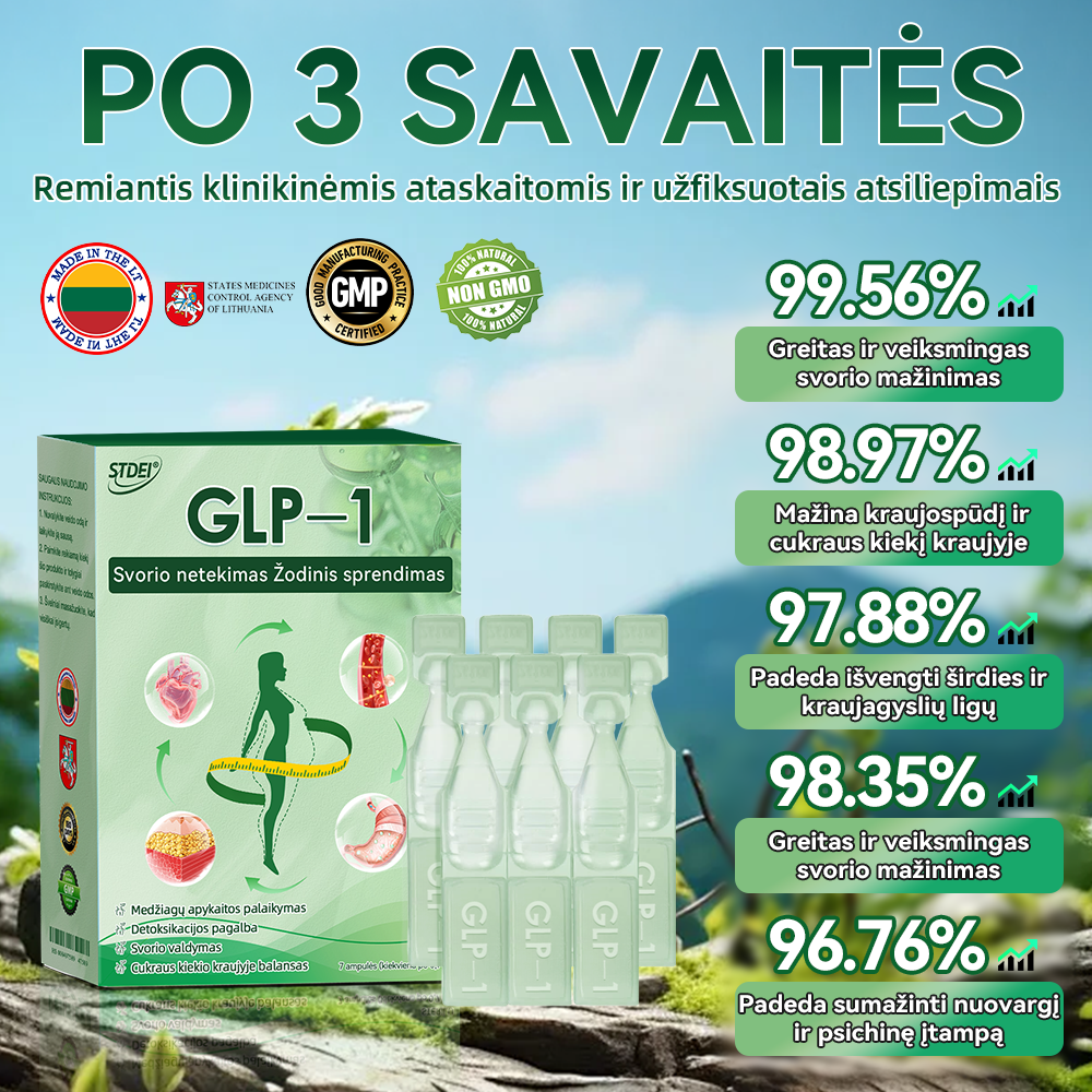 𝑆𝑇𝐷𝐸𝐼® 𝐺𝐿𝑃-1 𝑆𝑣𝑜𝑟𝑖𝑜 𝑛𝑒𝑡𝑒𝑘𝑖𝑚𝑎𝑠 Ž𝑜𝑑𝑖𝑛𝑖𝑠 𝑠𝑝𝑟𝑒𝑛𝑑𝑖𝑚𝑎𝑠“ Šį pažangų produktą, sukurtą nutukimo valdymo ekspertų komandos, po daugelio metų trukusių išsamių svorio metimo ir nutukimo kontrolės mechanizmų tyrimų patvirtino Lietuvos maisto ir vaistų administracija (VVKT). Unikali formulė sukurta siekiant veiksmingai skatinti riebalų deginimą, stabilizuoti cukraus kiekį kraujyje ir pagerinti medžiagų apykaitos pusiausvyrą. Jis pasižymi reikšmingu stangrinamuoju ir tonizuojančiu poveikiu, padėdamas vartotojams pagerinti kūno kontūrus ir odos būklę. Šis visapusiškas požiūris padeda vartotojams pasiekti savo sveikatos ir gerovės tikslus su didesniu pasitikėjimu savimi.